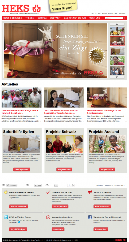2008 wurde die HEKS Website neu lanciert. Nun hat die Site für Weihnachten 2012 eine leichte Überarbeitung erhalten mit einigen nützlichen neuen Funktionen.
