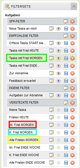 - Gelb: Beide Fristenfilter, ODER-verknüpft