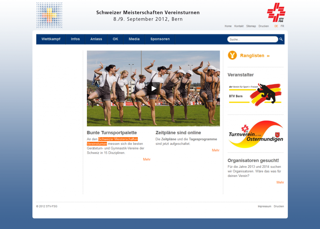 Neue TYPO3 Websites der Events des Schweizerischen Turnverbandes