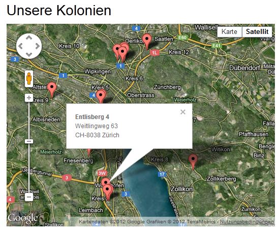 - Um alle Liegenschaften auf einer Karte sichtbar machen zu können wurde eine interaktive Karte implementiert. Sämtliche Pins und Adressen kann die BSZ jederzeit anpassen und erweitern. Zur Karte.