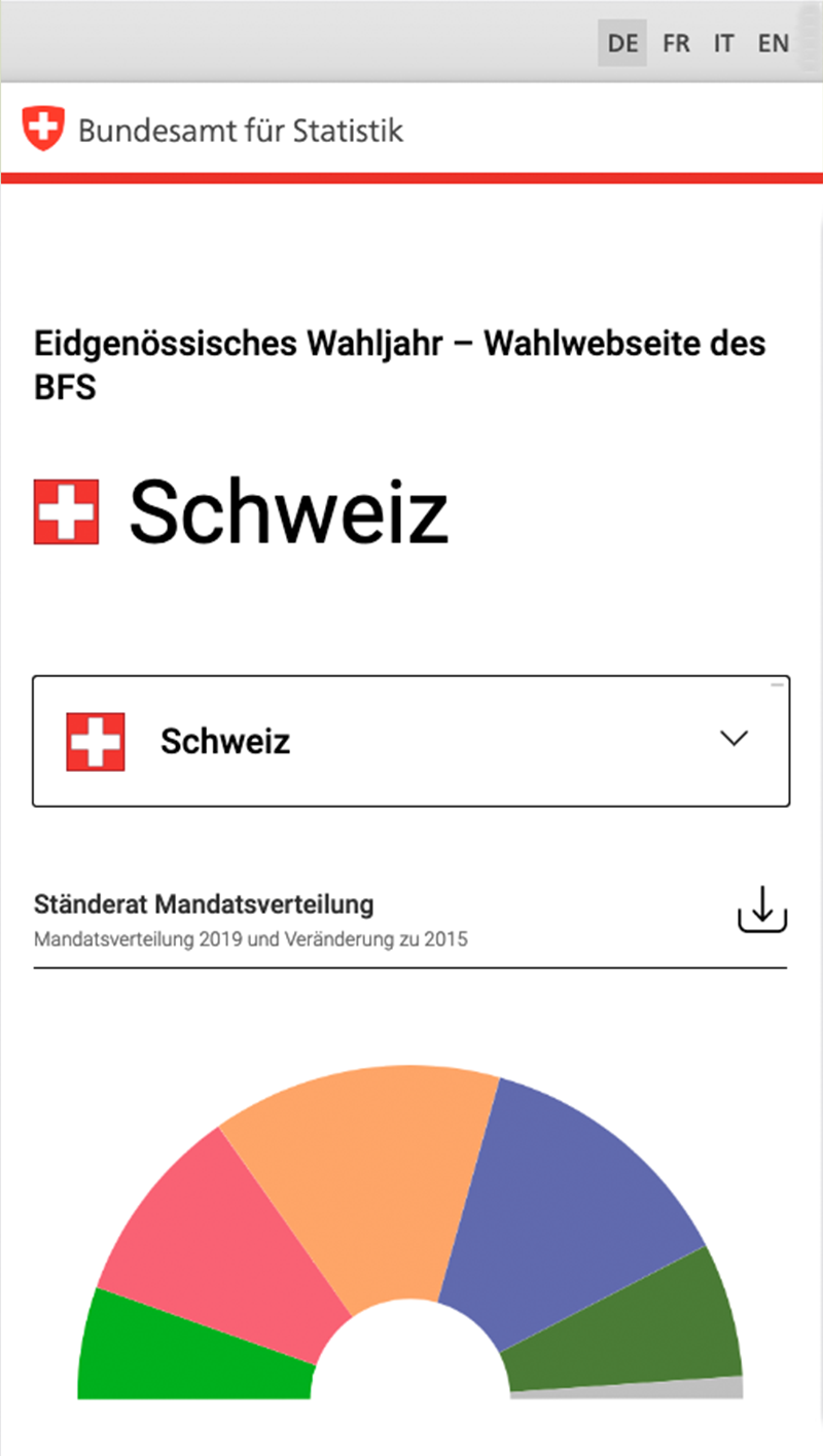 Kunde im Rahmen des Projekts «Wahlwebsite zu den Parlamentswahlen 2019» war die Sektion POKU des BFS. Sie ist verantwortlich für die Publikation der offiziellen Resultate der nationalen Wahlen (National- und Ständeratswahlen), welche alle 4 Jahre stattfinden.